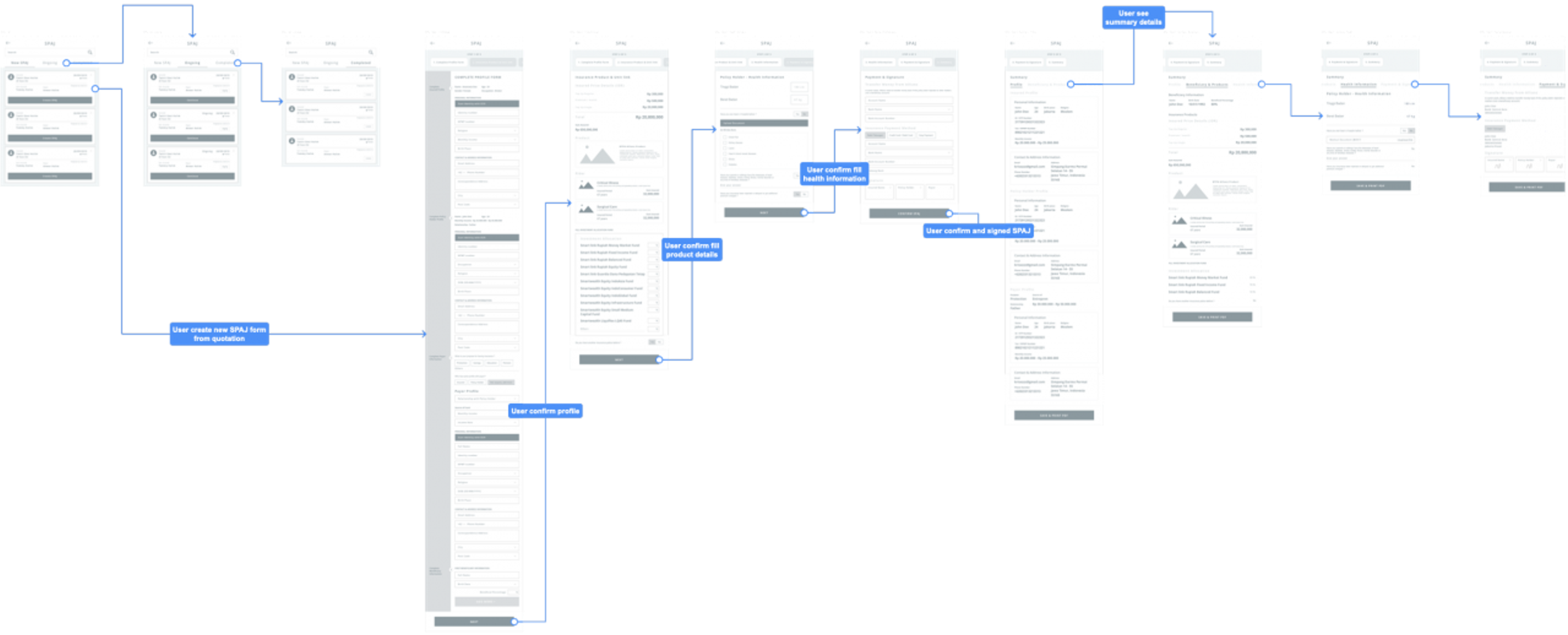 Using research findings, I developed wireframes that mapped out user-friendly workflows with MVP prioritization, ensuring seamless integration between banking and insurance services. Generating Illustration Feature for quoting insurance products with certain key features and track history in dashboard.